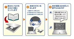 ノートパソコンとスキャナーがセットになり、音声と拡大表示で楽に読書が出来ます!